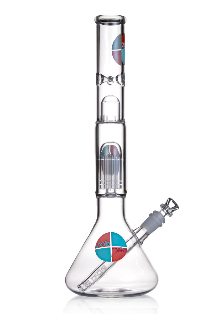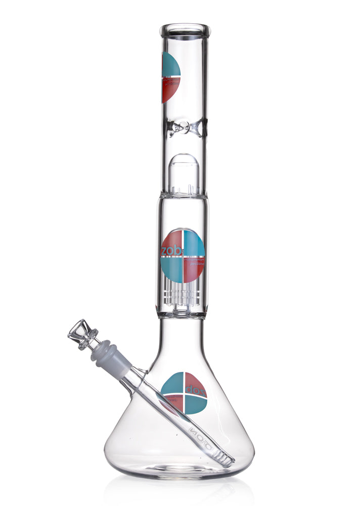ZOB glass made this scientific beaker with an emphasis on functionality. Smoke travels through its 6 diffusers into the first chamber, followed by extra percolation through a reinforced 8-arm tree perc. This ZOB beaker bong also features a splash guard to minimize splashback. A 3-pinch ice catcher is included to further cool your smoke. A wide 6" inch base and a 50mm tube offer extra smoke retention, making this bong great for huge clouds. Made in Los Angeles, CA USA.